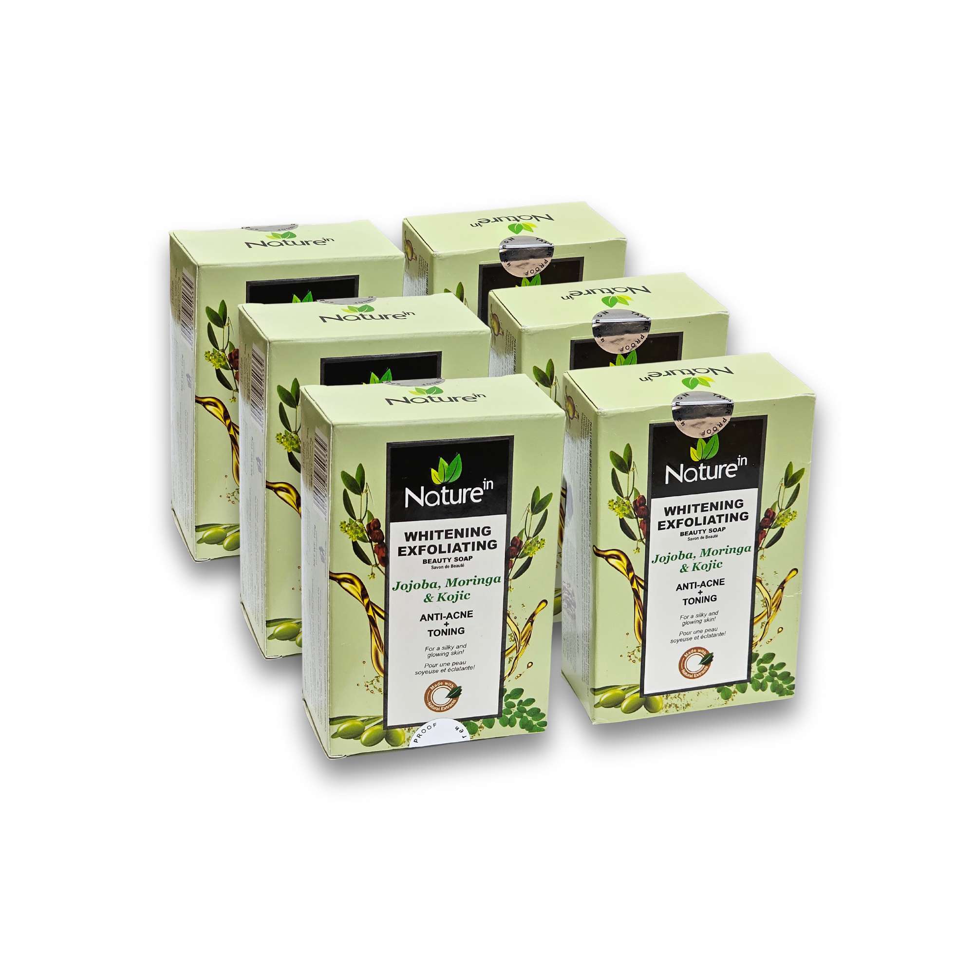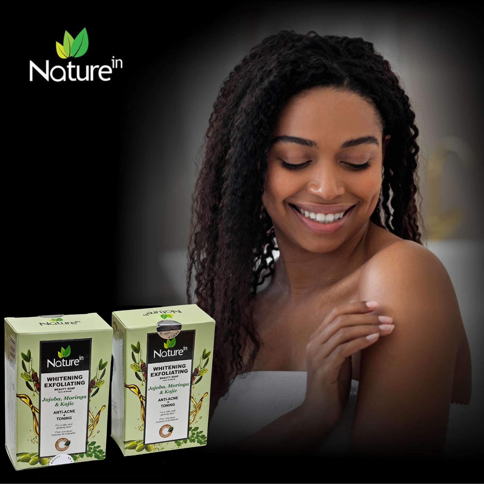 Indulge your skin with Nature-In Brightning Exfoliating Beauty Soap, your ultimate ally for achieving radiant, glowing, and youthful skin. Expertly formulated with a powerful blend of nature’s treasures – Jojoba, Moringa, and Kojic acid, each wash is not just a cleansing experience but a step towards skin transformation.